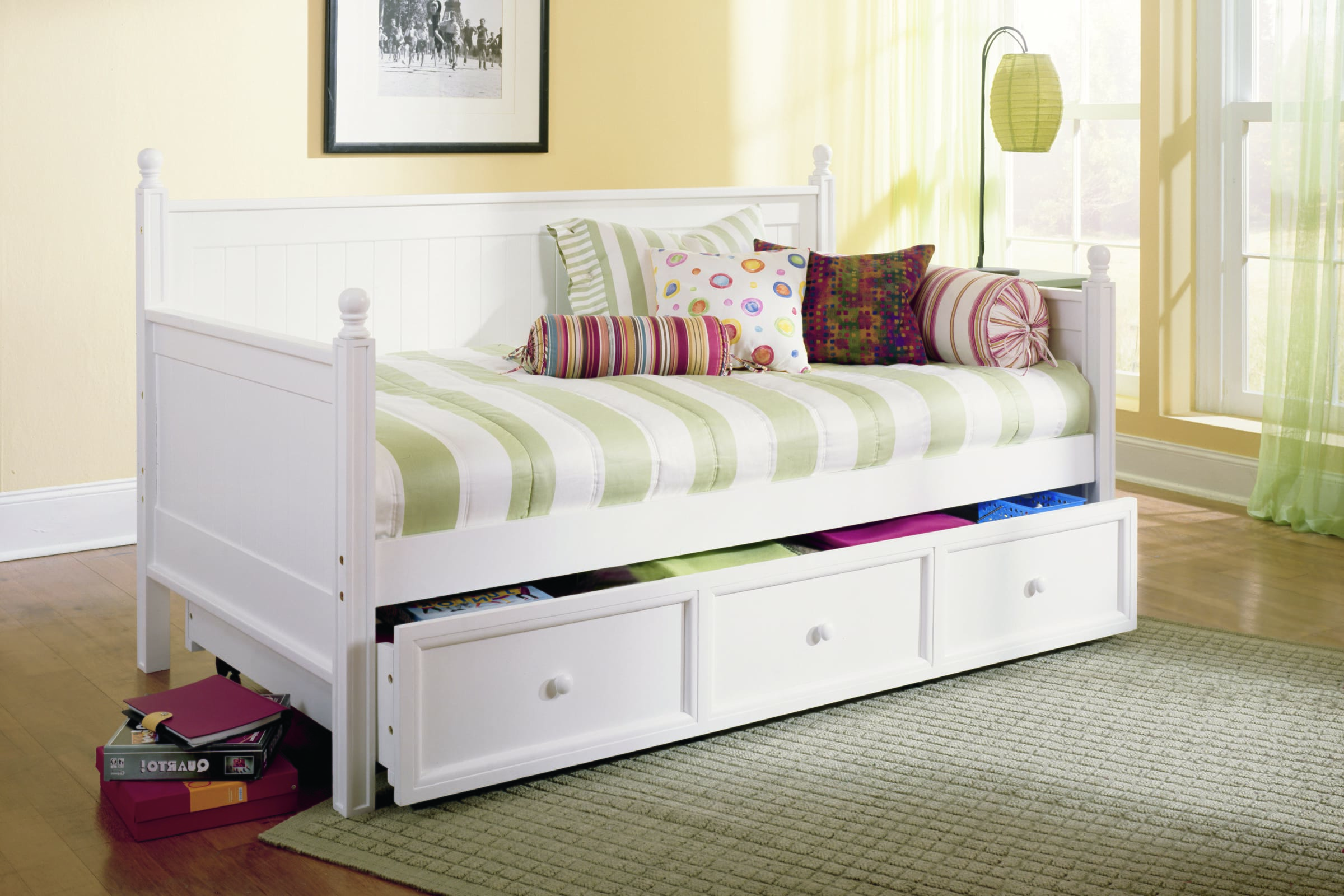 Like a blank canvas ready for the artist’s touch, the Casey daybed is the perfect base from which to build a room. Sturdy, wood construction in the back and arms makes this bed both practical and beautiful. Finished in Honey Maple or White, this easily adaptable piece can fit into any bedroom or guest room. The roll-out drawer can accommodate a Twin-size mattress for a sleepover guest or serve as extra storage space.