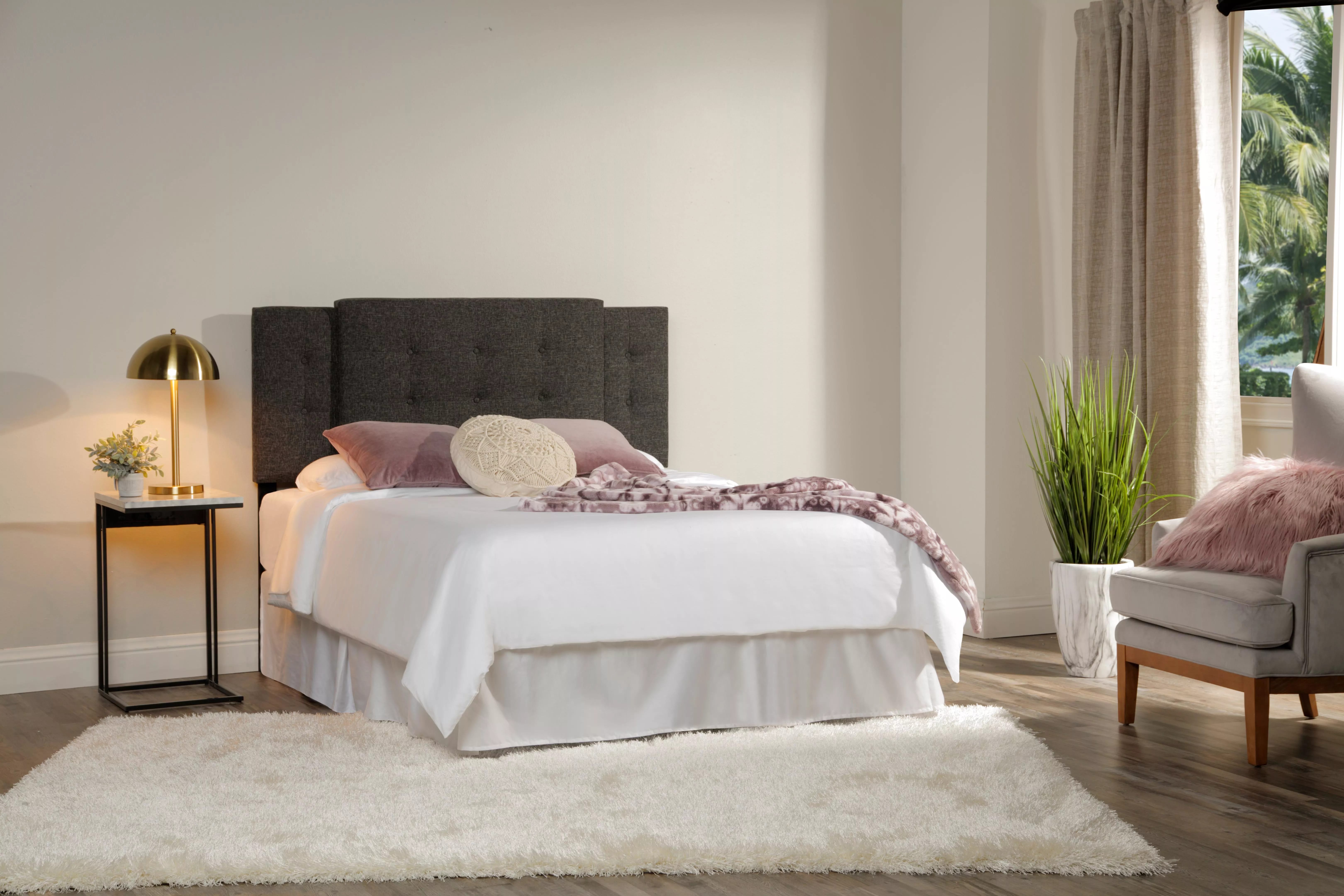 Add simplicity and style to your bed with the Hazelton headboard. This fashionable headboard comes in an Asphalt Gray fabric, and is expandable from a Twin size to King. Its basic color and button tufting make the Hazelton an excellent option for any bedroom design.